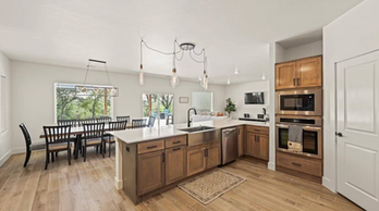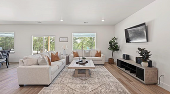 The Back Patio House offers 5 bedrooms, each with its own private bath, comfortably sleeping 14–20 guests. Relax in the expansive outdoor living space with a hot tub, perfect for unwinding after a busy day of sports or sightseeing. Inside, enjoy modern conveniences like Wi-Fi, washer/dryer, and a dedicated coffee station, while the open floor plan keeps everyone connected. This home balances privacy, comfort, and shared spaces, making it ideal for families and large groups traveling together.